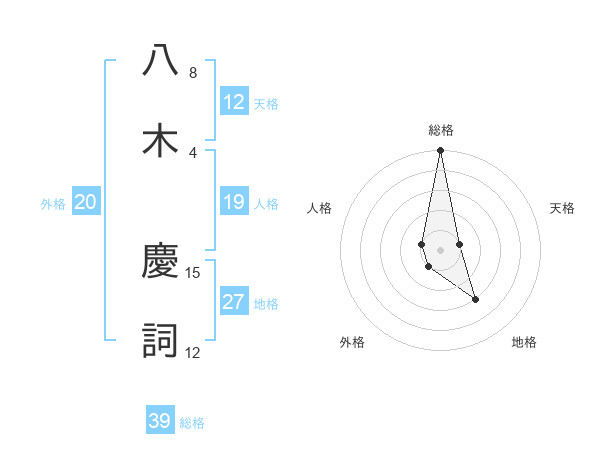 八木 慶詞さんの総格は39画の5点!