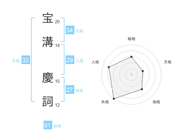 宝溝 慶詞さんの総格は61画の3点!