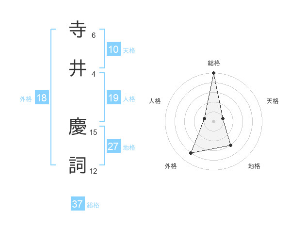 寺井 慶詞さんの総格は37画の5点!