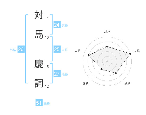 対馬 慶詞さんを姓名の画数から五運を鑑定