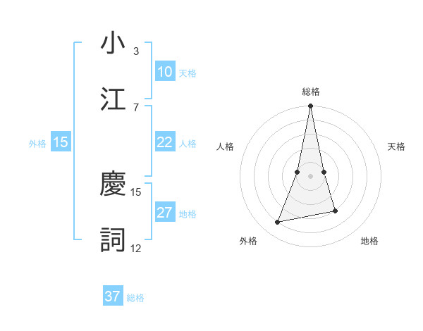 小江 慶詞さんの総格は37画の5点!