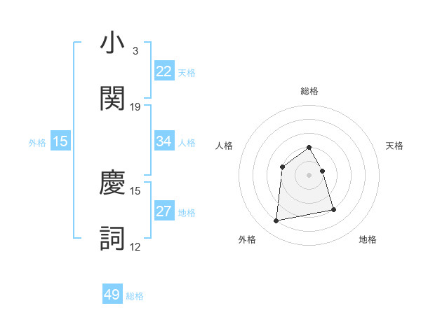 小関 慶詞さんの総格は49画の2点