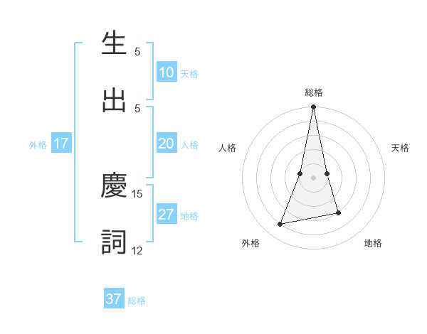 生出 慶詞さんの総格は37画の5点!