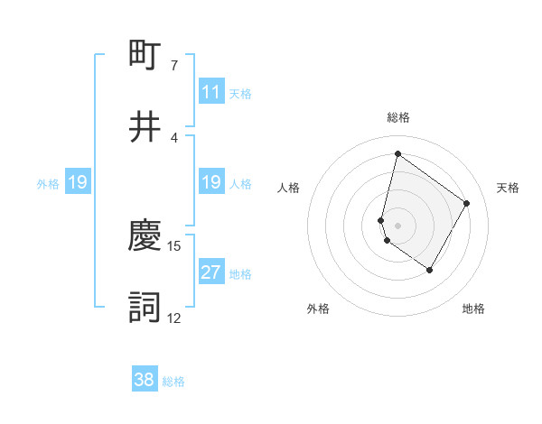 町井 慶詞さんを姓名の画数から五運を鑑定