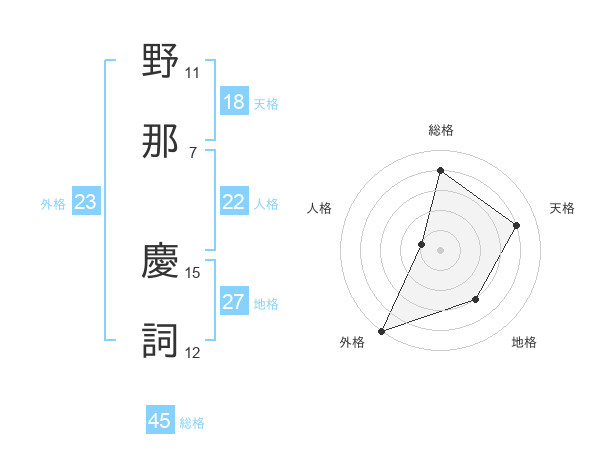 野那 慶詞さんを姓名の画数から五運を鑑定