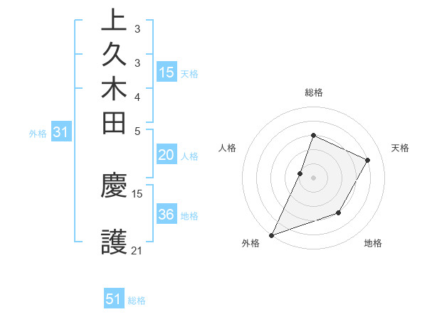 上久木田 慶護さんを姓名の画数から五運を鑑定