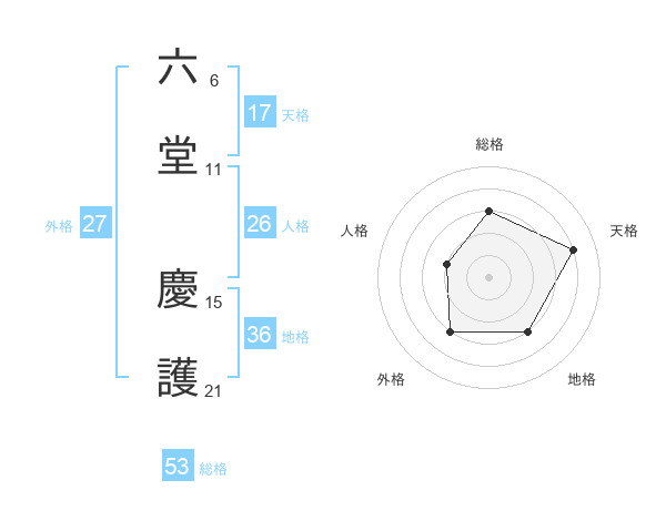 六堂 慶護さんを姓名の画数から五運を鑑定