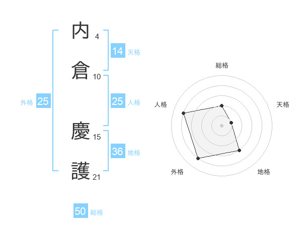 内倉 慶護さんの総格は50画の2点!