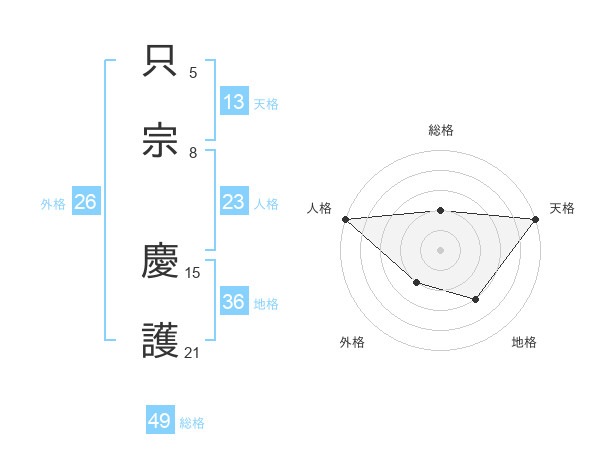 只宗 慶護さんを姓名の画数から五運を鑑定