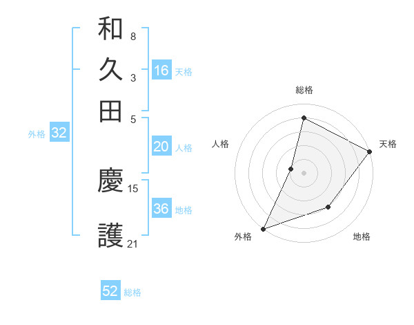 和久田 慶護さんを姓名の画数から五運を鑑定