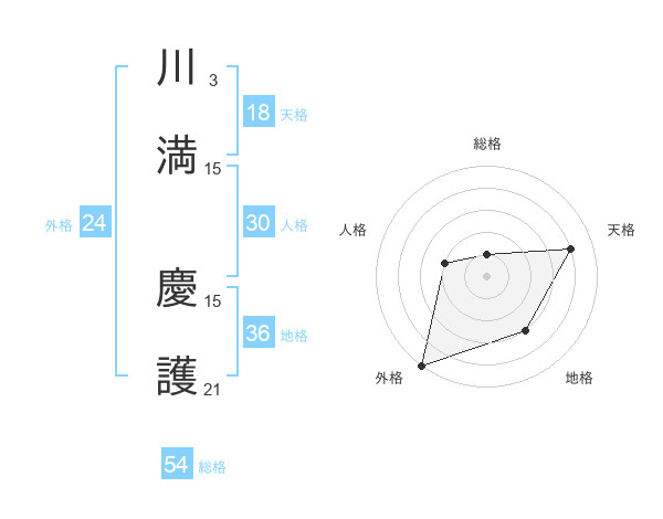 川満 慶護さんの総格は54画の1点!