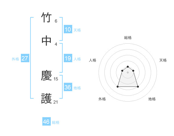 竹中 慶護さんを姓名の画数から五運を鑑定