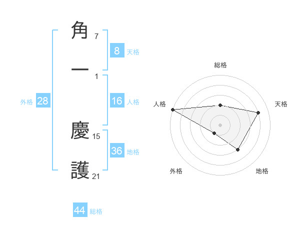 角一 慶護さんの天格は8画の4点!