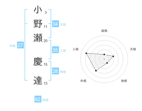 小野瀬 慶達さんを姓名の画数から五運を鑑定