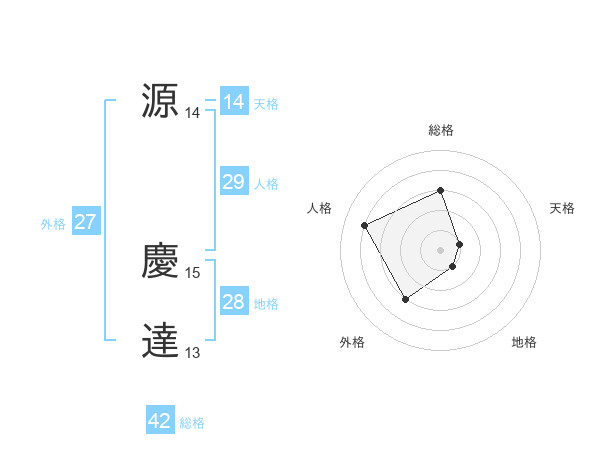 源 慶達さんの総格は42画の3点!