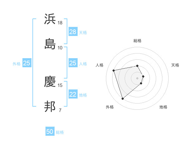 浜島 慶邦さんを姓名の画数から五運を鑑定