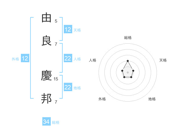 由良 慶邦さんの総格は34画の2点!