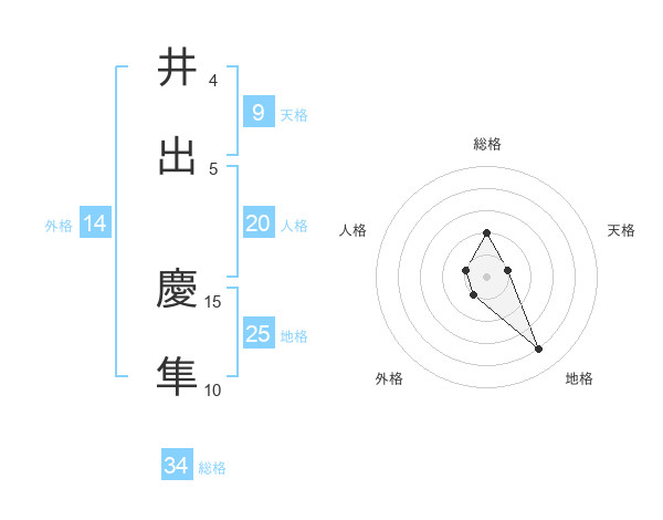 井出 慶隼さんの総格は34画の2点!