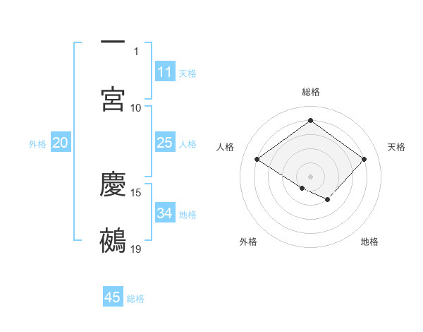 一宮 慶鵺さんの総格は45画の4点!