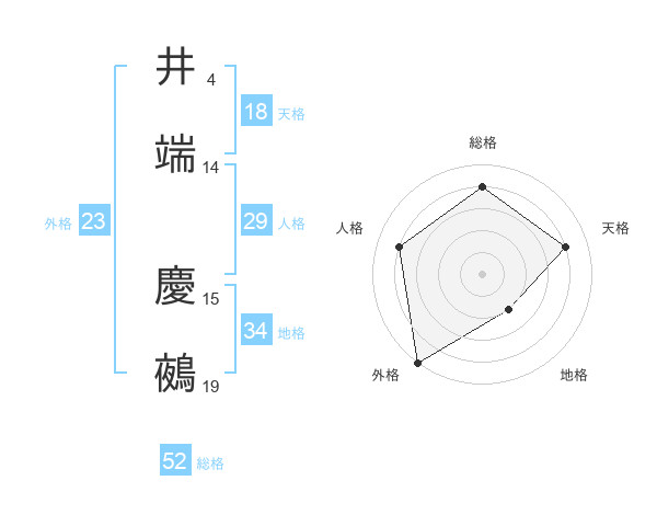井端 慶鵺さんの総格は52画の4点!