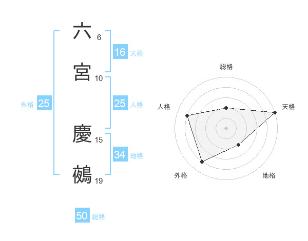 六宮 慶鵺さんを姓名の画数から五運を鑑定