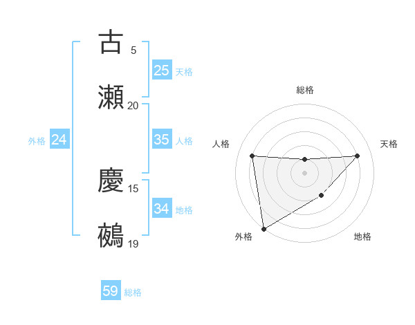古瀬 慶鵺さんの総格は59画の1点!