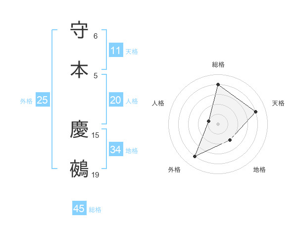 守本 慶鵺さんの総格は45画の4点!