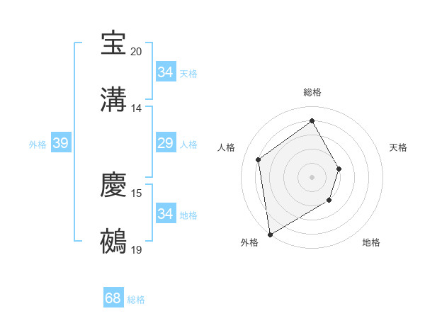宝溝 慶鵺さんの天格は34画の2点!