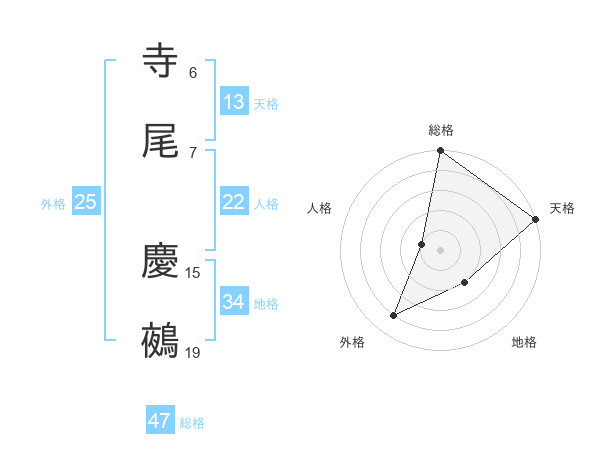 寺尾 慶鵺さんの総格は47画の5点!