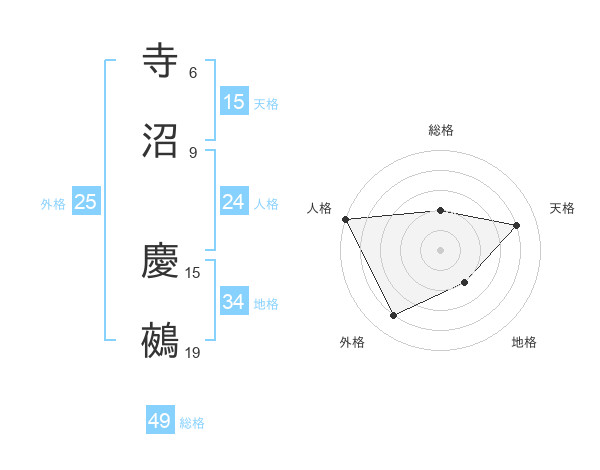 寺沼 慶鵺さんの総格は49画の2点!