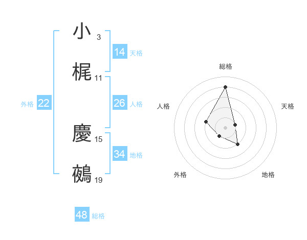 小梶 慶鵺さんを姓名の画数から五運を鑑定