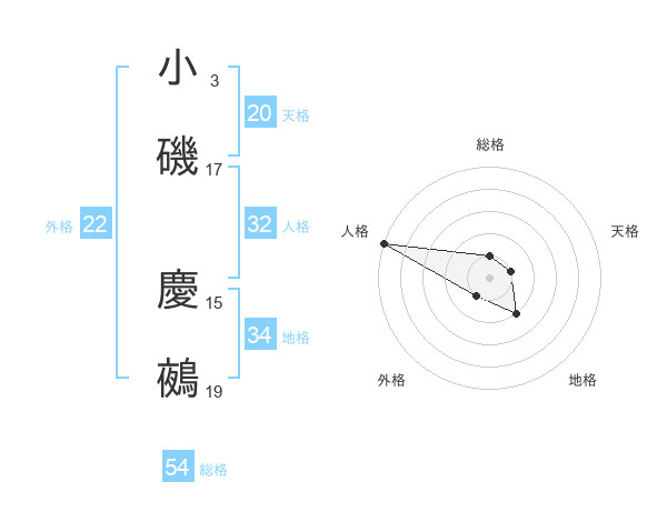 小磯 慶鵺さんの外格は22画の1点!