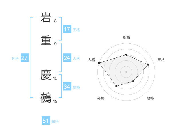 岩重 慶鵺さんを姓名の画数から五運を鑑定