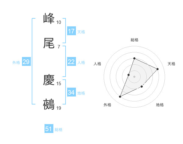 峰尾 慶鵺さんを姓名の画数から五運を鑑定
