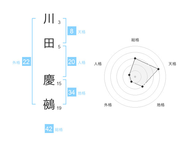 川田 慶鵺さんの天格は8画の4点!