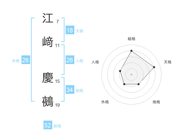 江﨑 慶鵺さんを姓名の画数から五運を鑑定