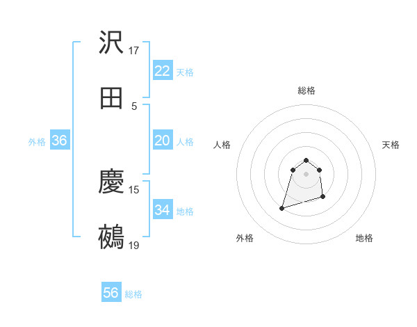 沢田 慶鵺さんを姓名の画数から五運を鑑定
