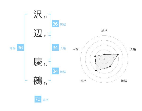 沢辺 慶鵺さんの天格は36画の3点!