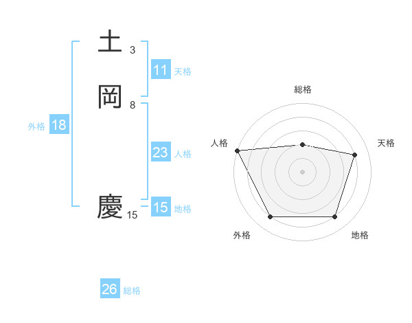 家系が持つ宿命的な運勢を表します。祖先から受け継いだ苗字ですので自分の力が及びません。家柄を象徴します。