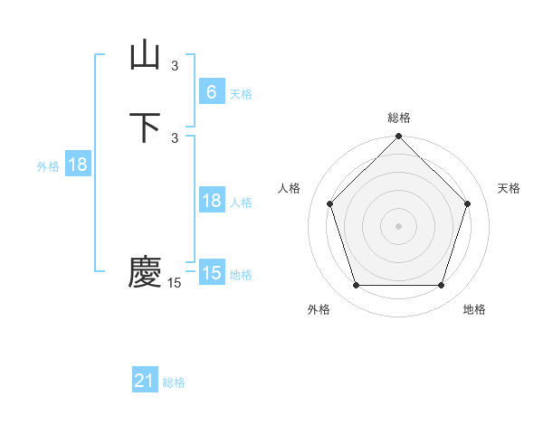 山下 慶さんの総格は21画の5点!