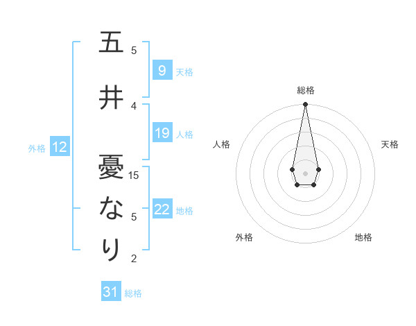五井 憂なりさんを姓名の画数から五運を鑑定