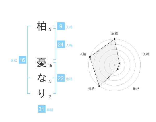 柏 憂なりさんを姓名の画数から五運を鑑定