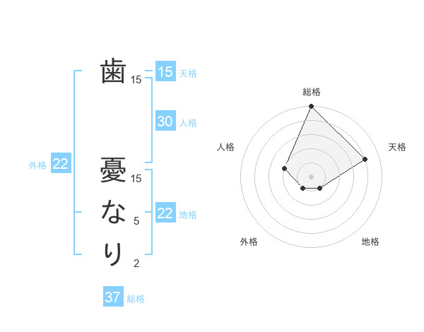 歯 憂なりさんを姓名の画数から五運を鑑定