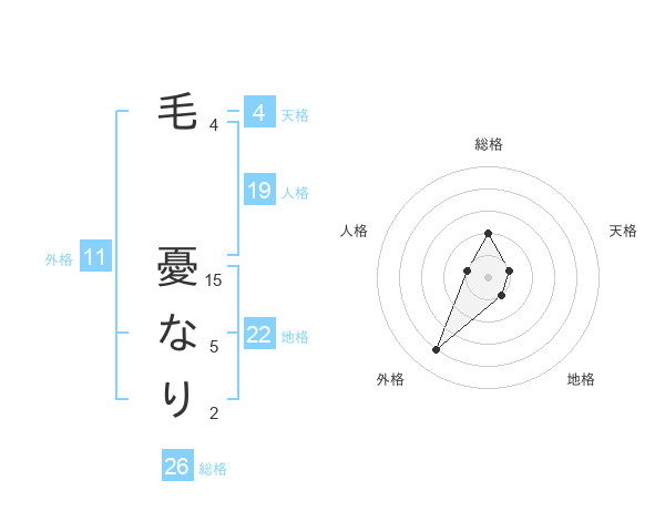 毛 憂なりさんの総格は26画の2点!