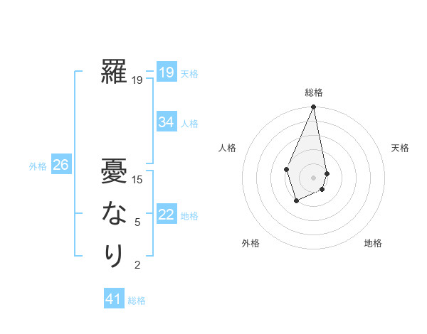 羅 憂なりさんを姓名の画数から五運を鑑定