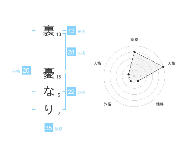 裏 憂なりさんの天格は13画の5点!