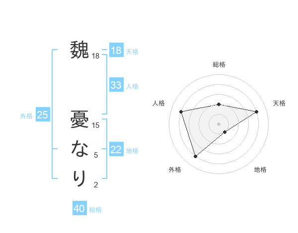 魏 憂なりさんの天格は18画の4点!