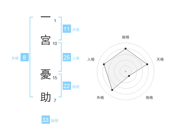 一宮 憂助さんの地格は22画の1点!