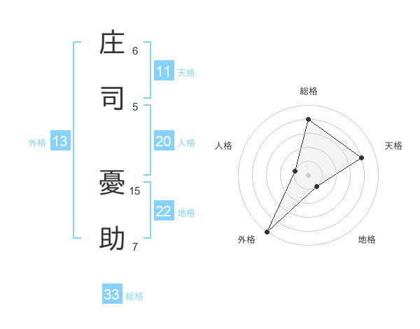 庄司 憂助さんの総格は33画の4点!