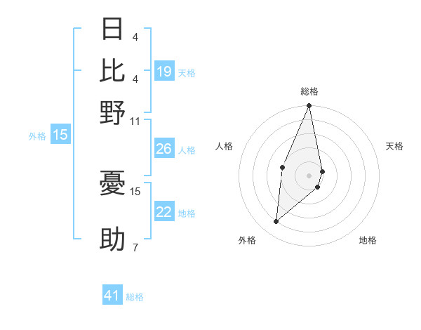 日比野 憂助さんを姓名の画数から五運を鑑定